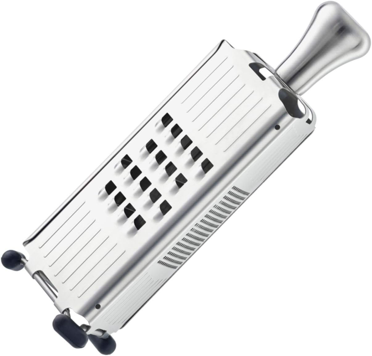 RÖSLE - Multifunktionsreibe, Hochwertige Reibe zum universellen Einsatz, Gemüsehobel, 3 Reibeflächen, mit Silikonstandfüßen, Edelstahl 18/10, inkl. Schutzcover, Silberfarben/Schwarz - 25 x 8,5 x 8,5 cm